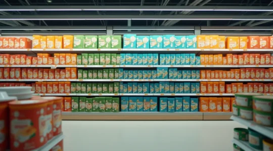 Les couleurs ne sont jamais neutres. Le bleu inspire confiance et est massivement utilisé dans les produits de santé et d’hygiène ; le vert évoque naturellement l’écologie et le bio (mais son usage systématique dans ce secteur crée une saturation visuelle) ; le rouge stimule l’appétit et l’urgence, d’où sa popularité dans l’alimentaire et les promotions.